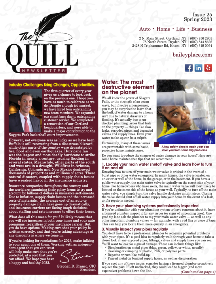 A lot is changing in the insurance industry lately. Learn about what is driving rising insurance costs, how to prevent water damage, and about our featured customers McGraw Box Brewing, and The John Joseph Inn…